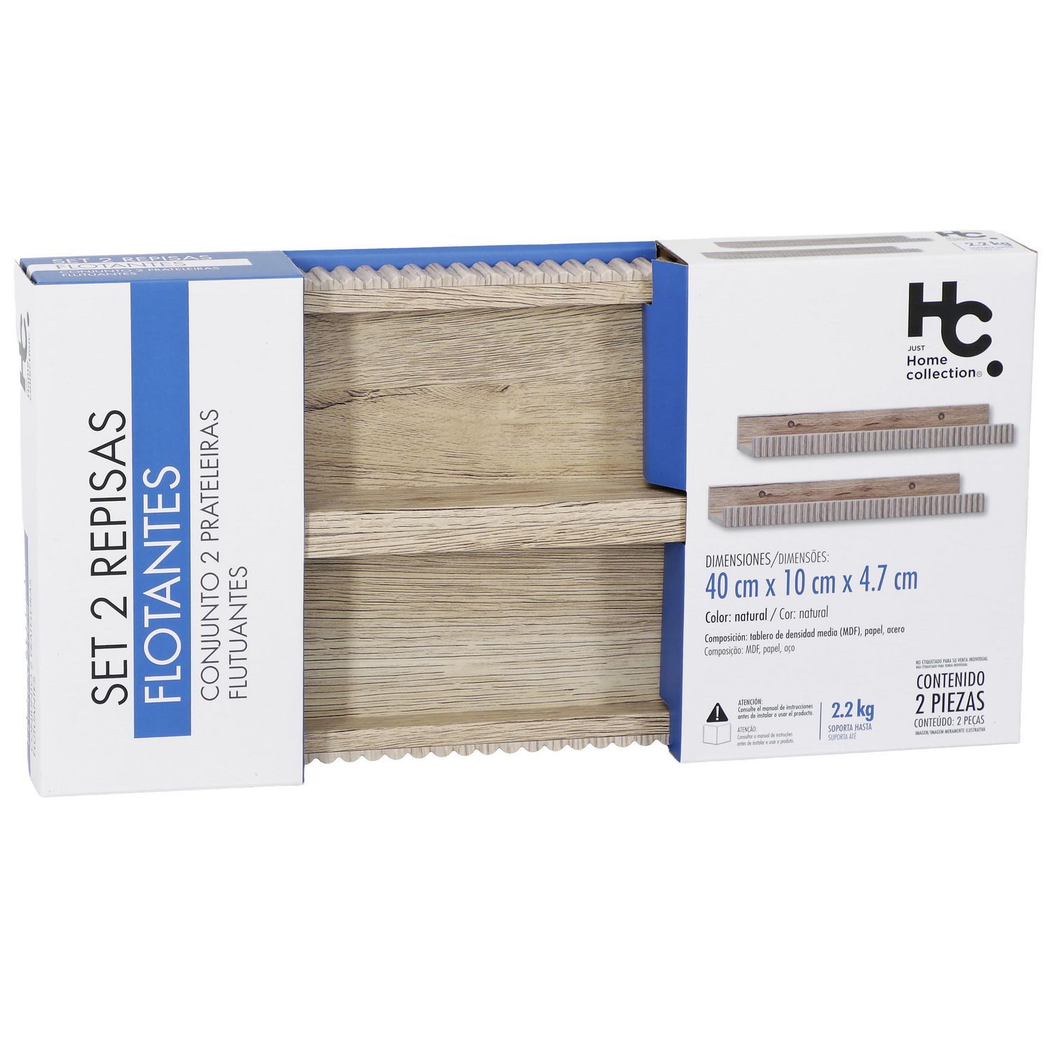 Pack de 2 repisas flotantes 40 x 10 cm natural