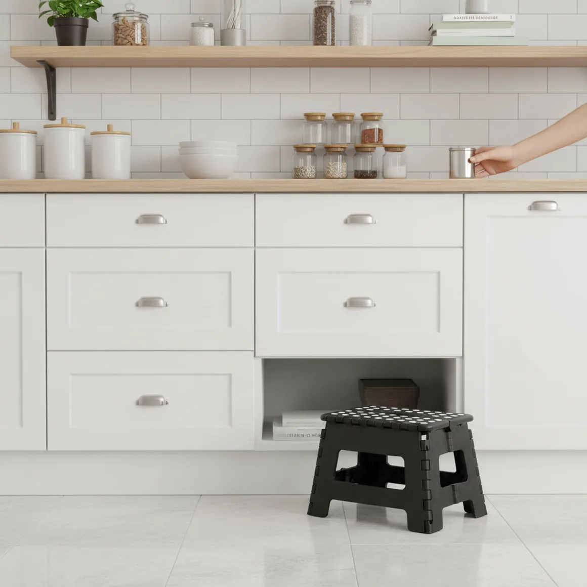 ¡Dale un toque práctico y moderno a tu hogar con este banquito plegable! Su diseño innovador y su facilidad de uso lo convierten en el aliado perfecto para esas tareas cotidianas donde necesitas un extra de altura. Ideal para la cocina, el taller o cualquier rincón que requiera una solución rápida y eficiente.