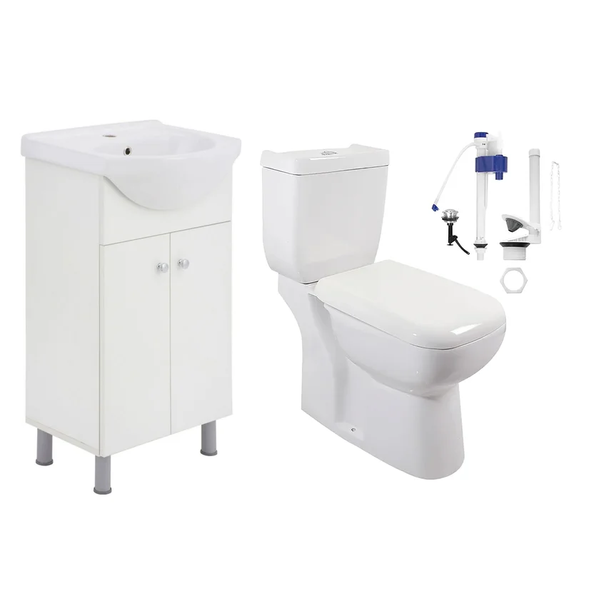 Kit inodoro largo dos pzs. Gante dual con deposito y asiento blanco
